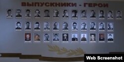 На этом фото слета выпускников ДВОКУ, сделанном 27 июля 2014 года, хорошо видно, что симметрию стенда нарушили две новые фотографии – Маслова и Попова (их несложно опознать даже в таком плохом качестве, фотографий этих героев России в открытых источниках более чем достаточно):