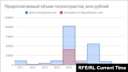 С 2011 года компании из империи предпринимателя Евгения Пригожина заключили как минимум 5393 госконтракта на общую сумму 209,23 миллиарда рублей. Контрактов может быть гораздо больше, так как некоторым дочерним организациям Минобороны разрешено засекречивать информацию о закупках.