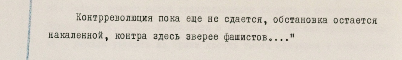 После ввода войск Варшавского договора ситуация в ЧССР хоть и меняется к лучшему, но слишком медленно, говорится во многих письмах. “Контра по-прежнему свирепствует”, – так в глазах одного из отправителей выглядели последние попытки сохранить достижения Пражской весны.