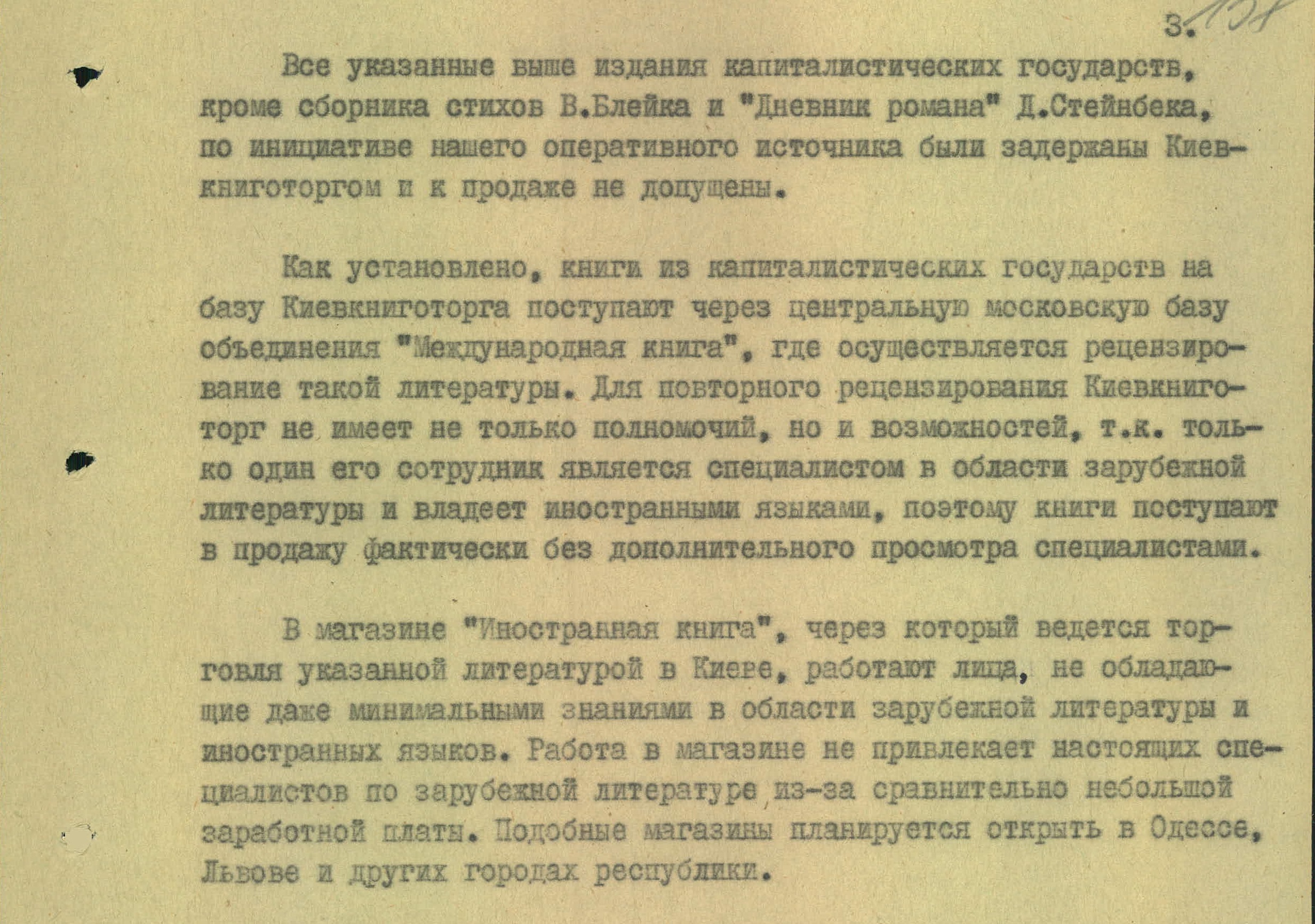 КГБшники уточняли, что западная литература поступала в Киев не напрямую из-за границы, а через Москву. На московской базе объединения «Международная книга» книги рецензировали и распределяли для поставок в разные регионы. Московские литературоведы, отвечавшие за содержание этих изданий, почему-то не замечали привезенную крамолу (хотя сколько изданий все же забраковали, мы не знаем).