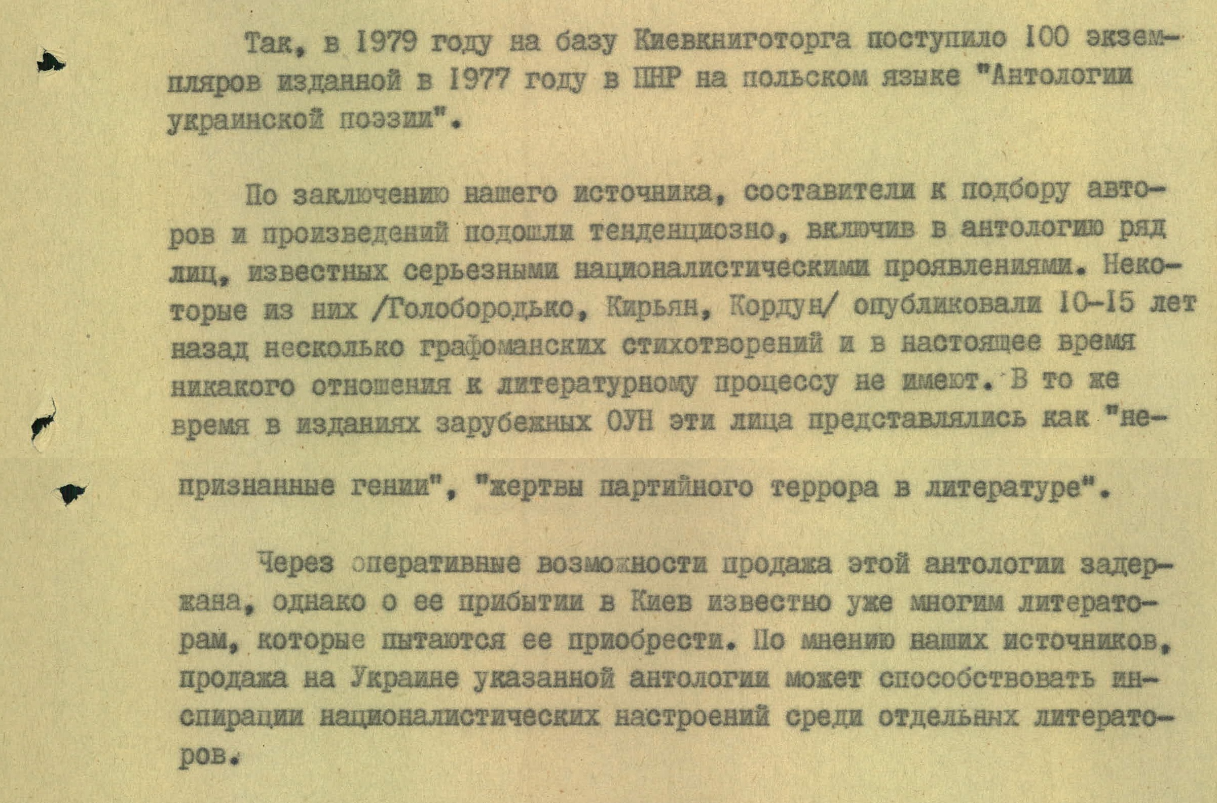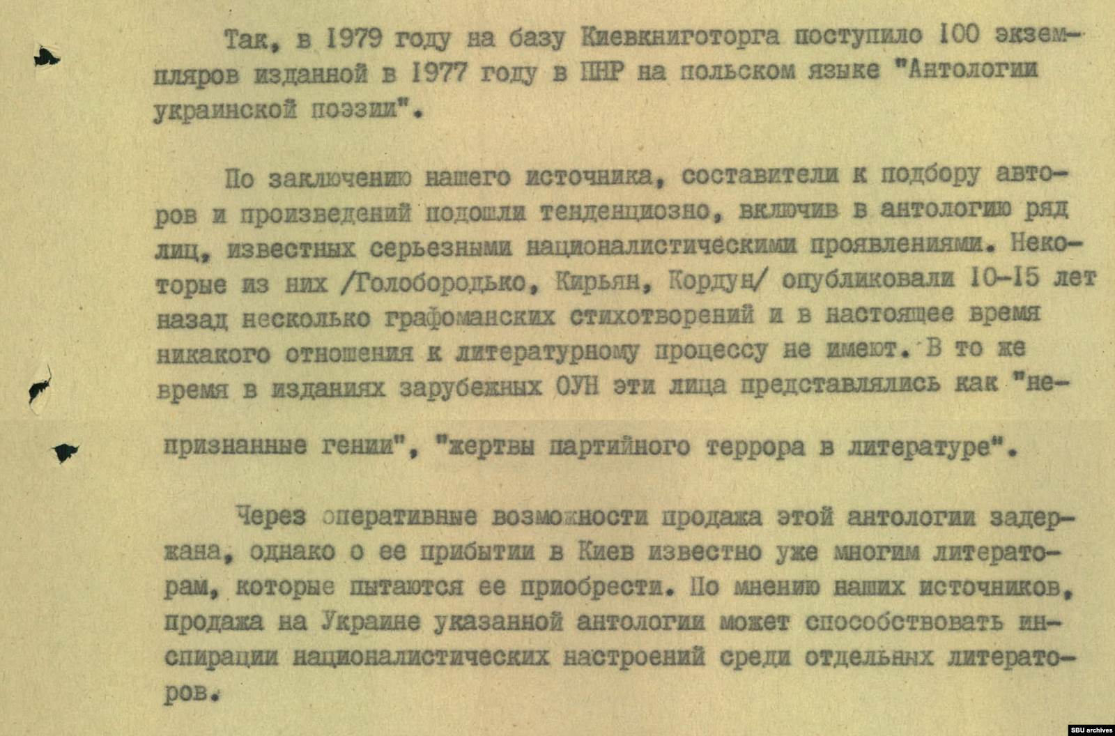 «По мнению наших источников, продажа на Украине данной антологии может способствовать инспирации националистических настроений среди отдельных литераторов», — заключали в КГБ.