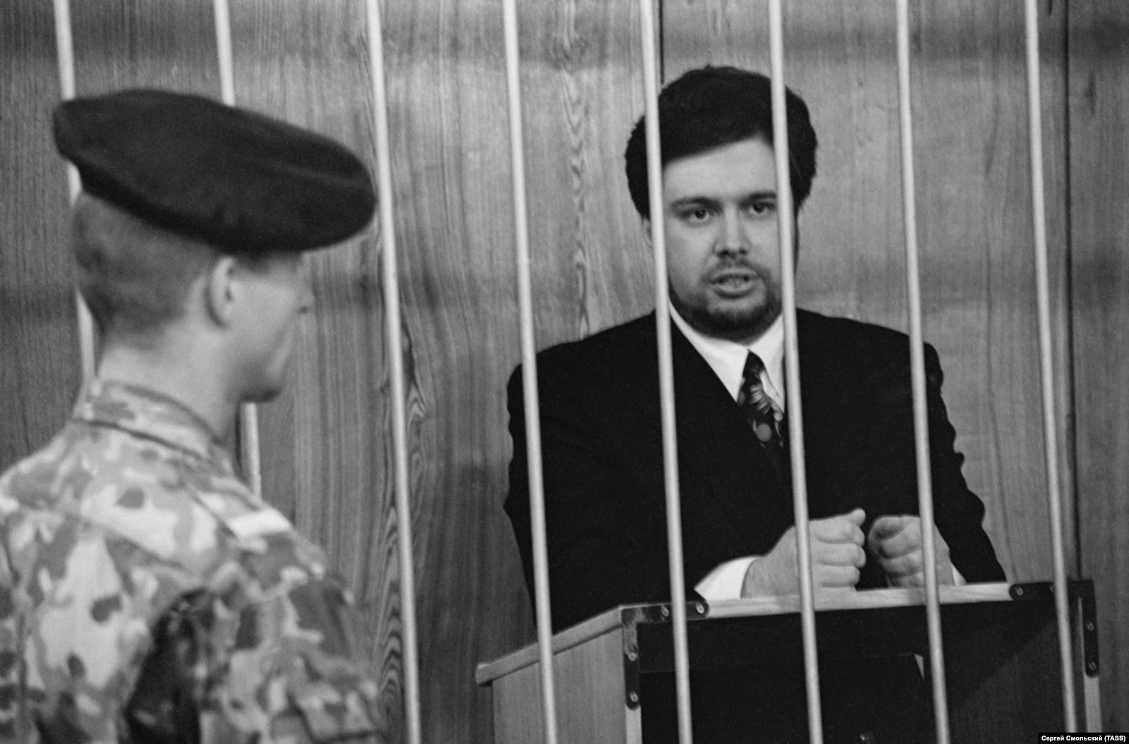 Обвиняемый в краже рукописей из Российской национальной библиотеки Дмитрий Якубовский во время своего последнего слова в городском суде Санкт-Петербурга, 11 ноября 1996 года